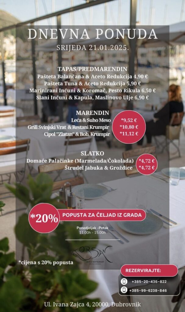 Imate ponudu dnevnih marendi, i želite ih promovirati na dubrovniknetu?! Javite se s povjerenjem na marketing@dubrovniknet.hr ili na 091 344 6000