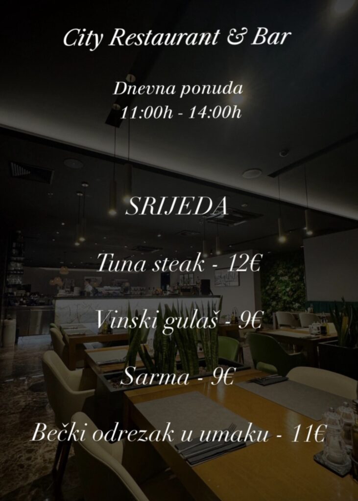 City restoran & bar, Hrvatskog crvenog križa 45, kontakt 020 301 800, ne vrše dostavu