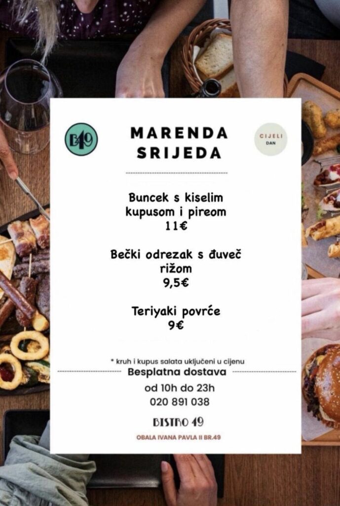 Bistro 49, Obala Ivana Pavla II, br.49, kontakt 020 891 038, moguća dostava