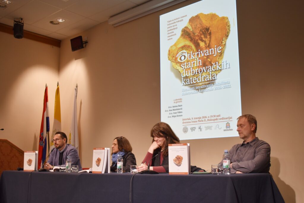 Rezultati istraživanja lokaliteta dubrovačke katedrale 2018. – 2022.“ predstavljen je u četvrtak 9. travnja u dvorani pape Ivana Pavla II. u Dubrovniku. Zbornik su predstavili urednica izdanja dr. sc. Maja Zeman, suradnici na projektu dr. sc. Ana Marinković i dr. sc. Ivan Viđen te jedan od recenzenata dr. sc. Antun Baće. Predstavljanje je održano u organizaciji Vijeća za kulturu i znanost Dubrovačke biskupije.