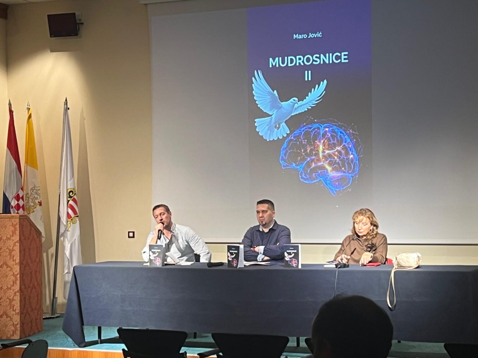 U Dvorani Ivana Pavla II. U subotu 15. studenog u 19 sati predstavljena je nova knjiga Mudrosnice II autora Mara Jovića. U predstavljanju su uz autora sudjelovali Katja Bakija, Darko Milošević i Luce Ćatić.