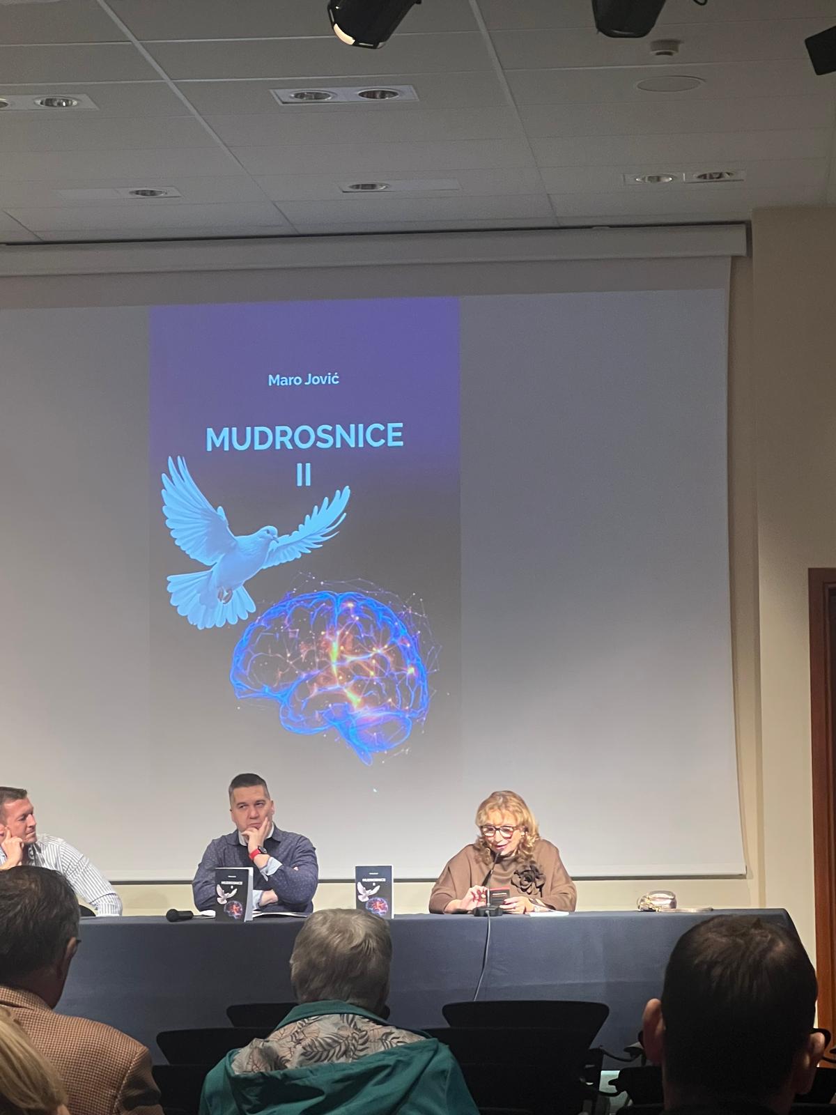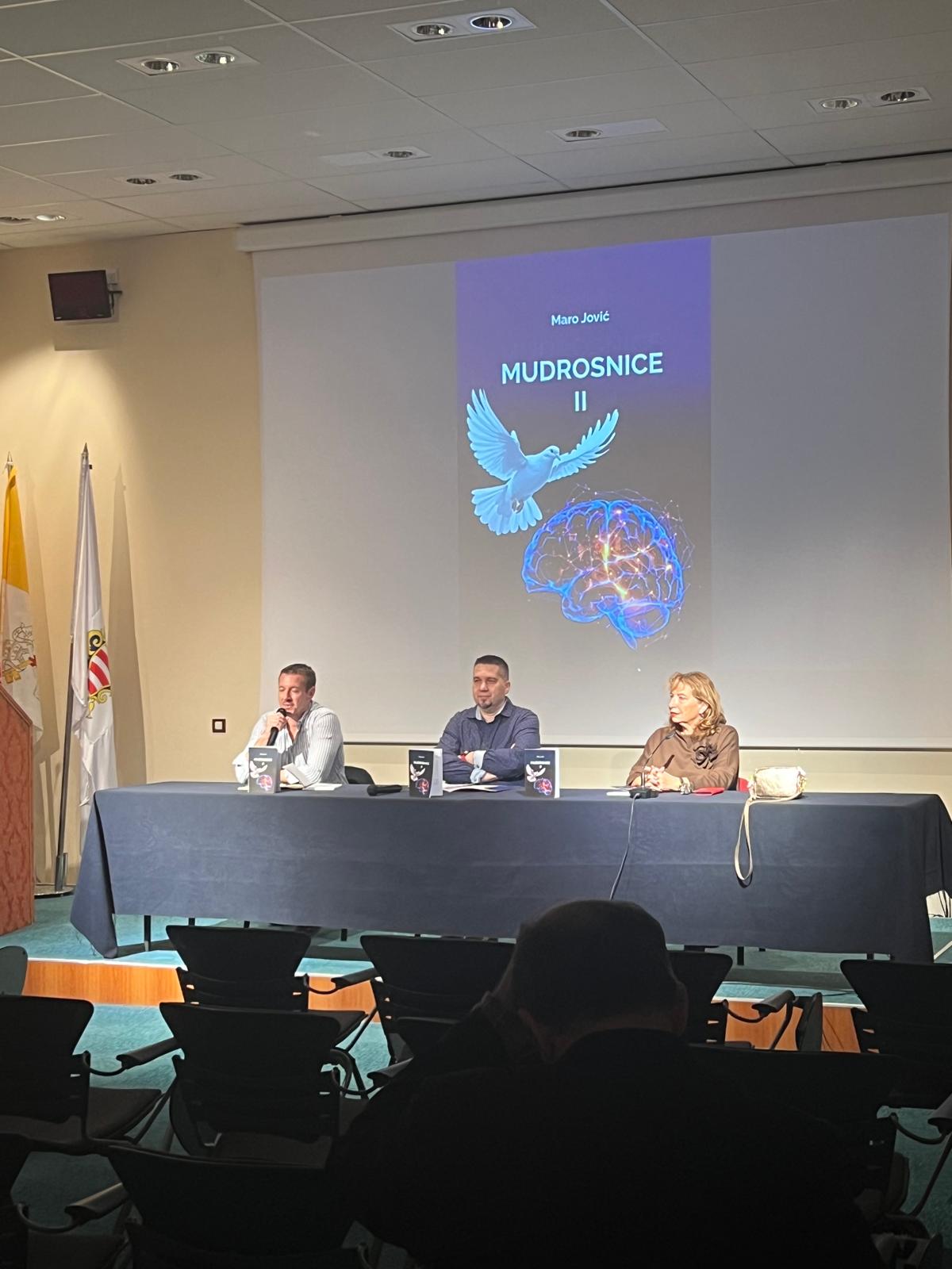 U Dvorani Ivana Pavla II. U subotu 15. studenog u 19 sati predstavljena je nova knjiga Mudrosnice II autora Mara Jovića. U predstavljanju su uz autora sudjelovali Katja Bakija, Darko Milošević i Luce Ćatić.