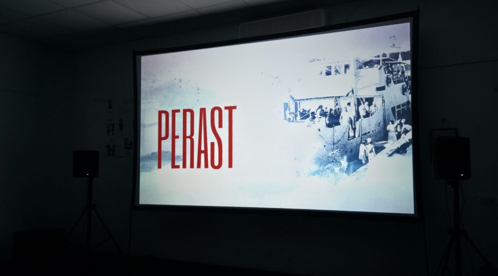 U prepunoj dvorani Doma kulture u Babinom Polju na otoku Mljetu, uz snažne emocije i dugotrajan pljesak, održana je premijera dugometražnog dokumentarnog filma „Perast – ranjeni brod“ autora Paule i Đela Jusića.