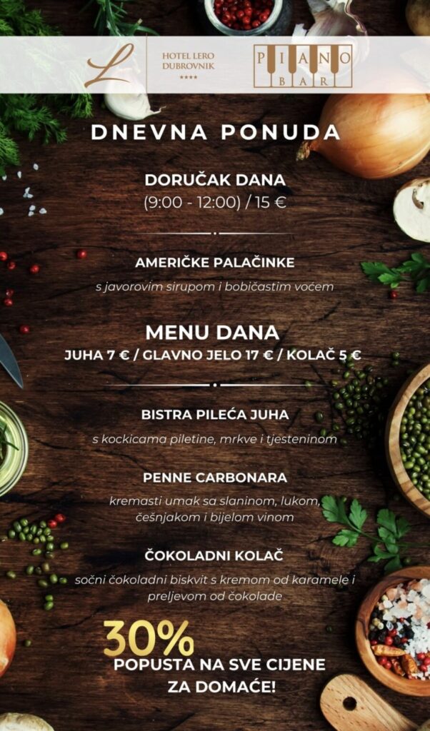 Imate ponudu dnevnih marendi, i želite ih promovirati na dubrovniknetu?! Javite se s povjerenjem na marketing@dubrovniknet.hr ili na 091 344 6000
