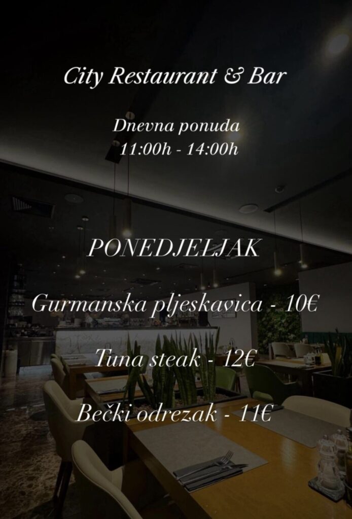 City restoran & bar, Hrvatskog crvenog križa 45, kontakt 020 301 800, ne vrše dostavu
