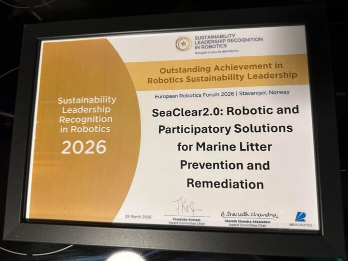 Dodijeljeno priznanje potvrđuje izvrsnost projekta SeaClear 2.0 u razvoju tehnoloških rješenja usmjerenih na zaštitu morskog okoliša te njegov značajan doprinos jačanju održivog pristupa u području robotike.