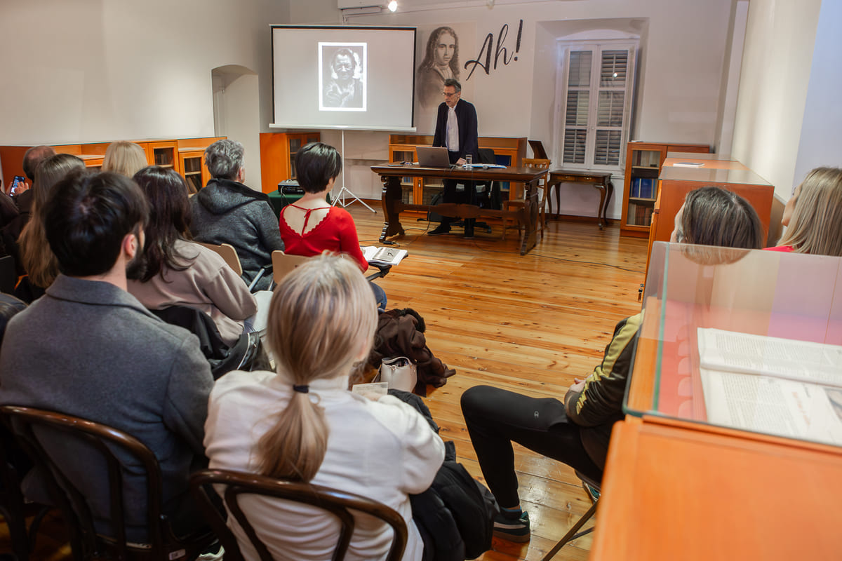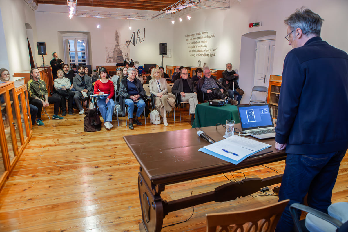 Okupljene je uvodno pozdravila voditeljica Znanstvene knjižnice Paula Raguž, istaknuvši kako knjižnična građa otkriva nove perspektive na poznate autore. Među takvim otkrićima su i najraniji Maurovićevi crteži objavljeni u najdugovječnijem dubrovačkom humorističko-satiričnom listu Jež, koje su posjetitelji mogli razgledati.
