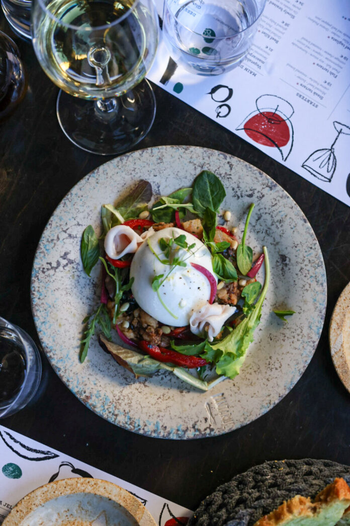 Za početak, poslužujemo *caponatu s burratom i lardom* – sicilijansko predjelo od povrća i maslina s malo pinjola uz kremasto srce burrате i tanke listove larda koji se tope na jeziku. Rustikalno i rafinirano u isto vrijeme. Pravo malo putovanje u mediteransko sunce na pjatu.