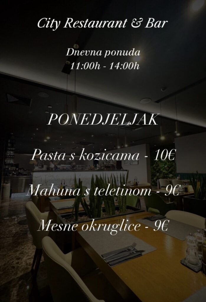 City restoran & bar, Hrvatskog crvenog križa 45, kontakt 020 301 800, ne vrše dostavu