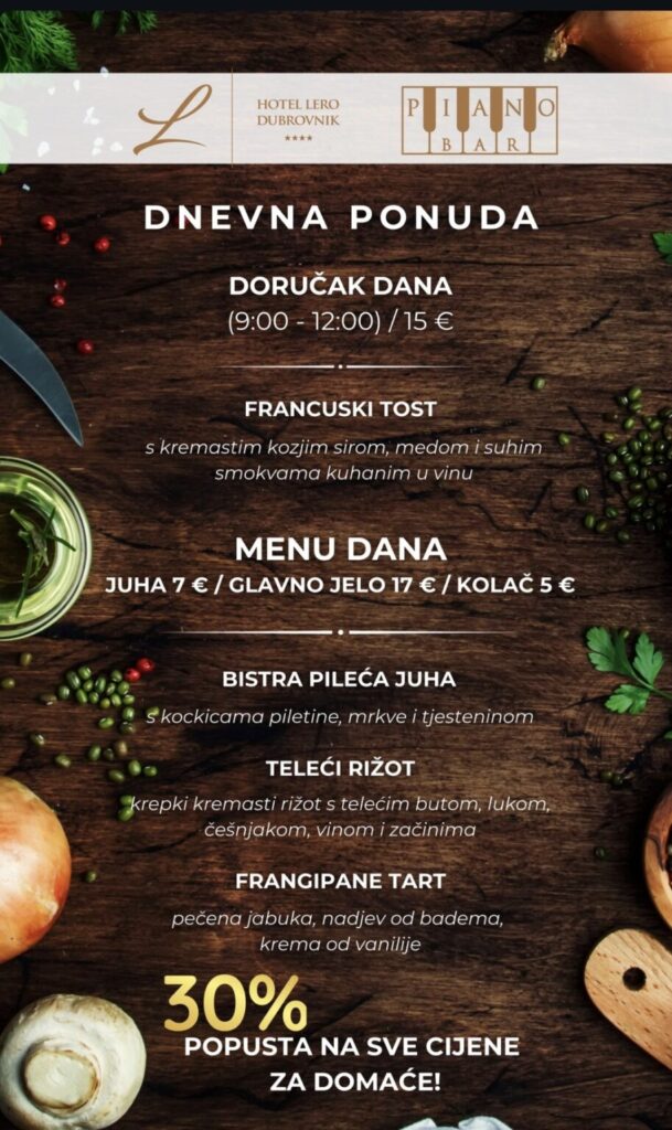 Piano bar – hotel Lero, Iva Vojnovića 14, Dubrovnik, kontakt 020 341 432, nema dostave
