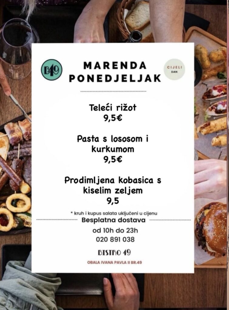 Bistro 49, Obala Ivana Pavla II, br.49, kontakt 020 891 038, moguća dostava
