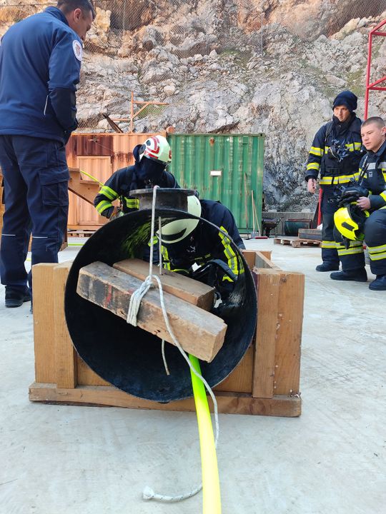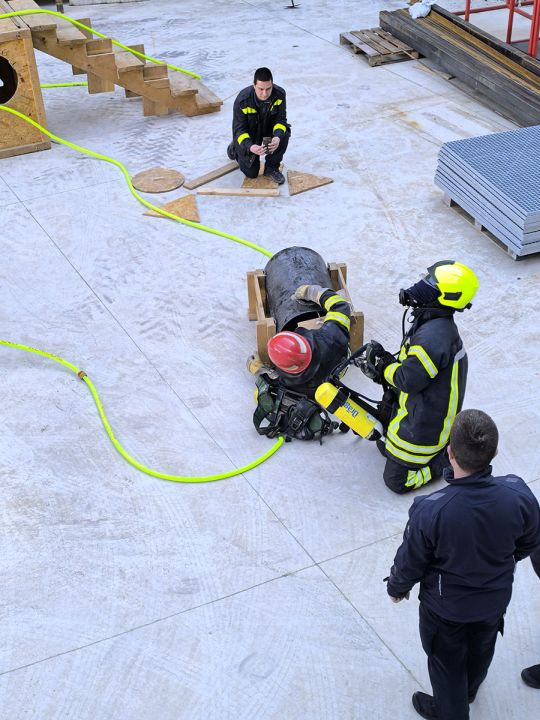 Mayday trening: Uvježbavanje postupaka u situacijama kada je ugrožen život samog vatrogasca, uz korištenje „hladnog poligona“ za snalaženje u zatvorenom nepoznatom prostoru.