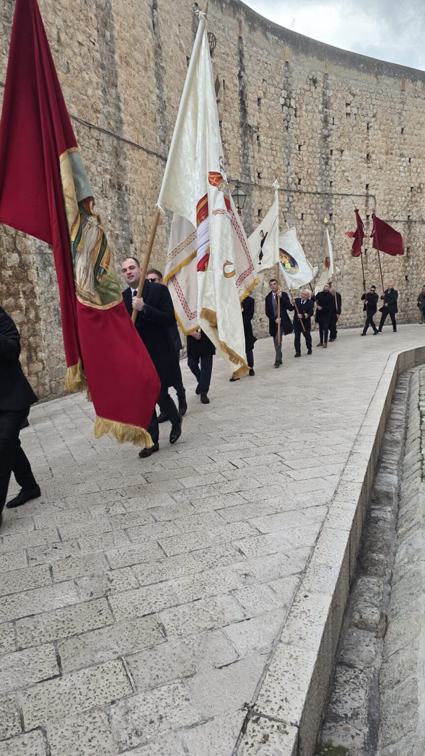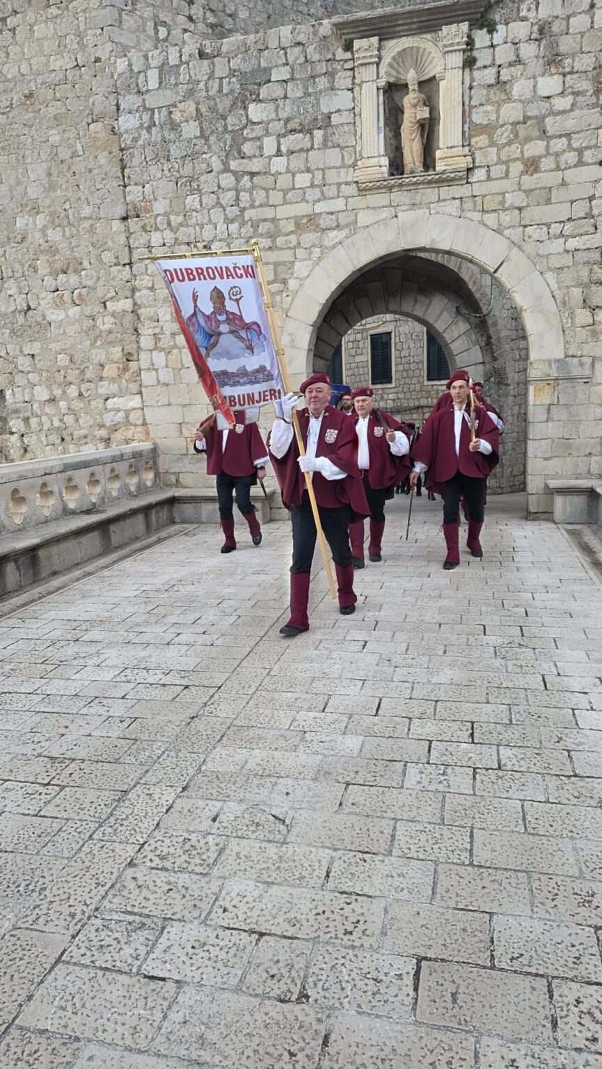 Festa sv. Vlaha ima točno utvrđene protokole i običaje koji se poštivaju. Sličice iz povijesne jezgre to potvrđuju. Točno se zna tko dočekuje hodočasnike i barjaktare s istoka i sa zapada.