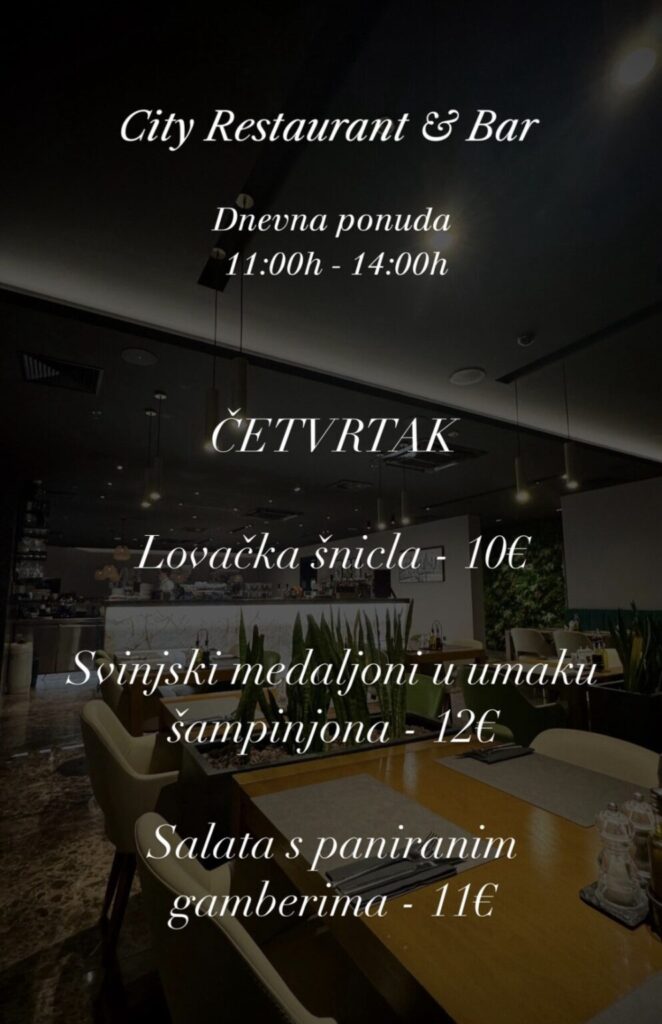 City restoran & bar, Hrvatskog crvenog križa 45, kontakt 020 301 800, ne vrše dostavu