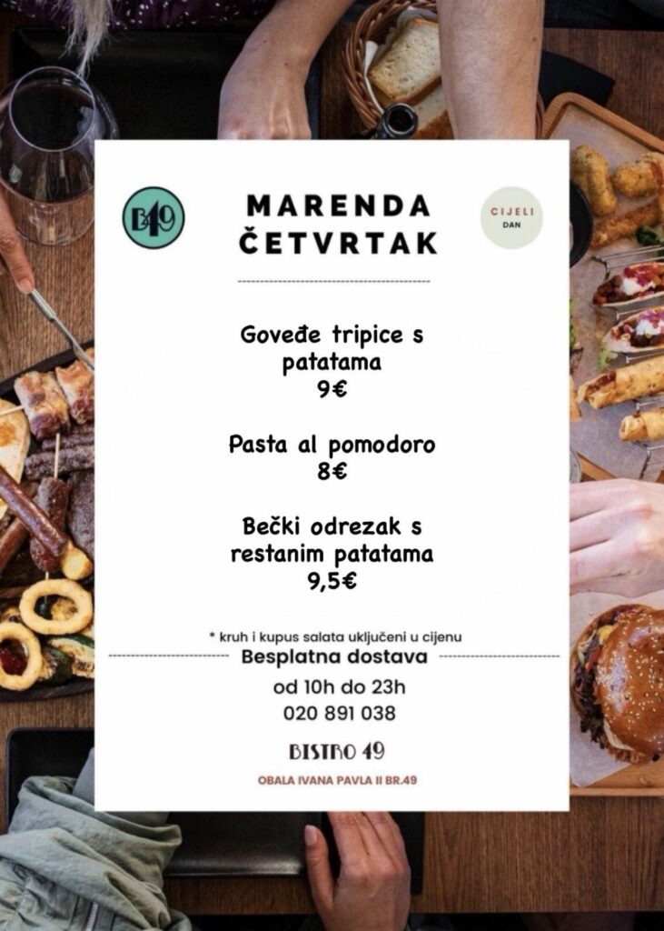 Bistro 49, Obala Ivana Pavla II, br.49, kontakt 020 891 038, moguća dostava