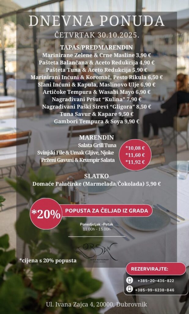 Restoran Orsan, Ivana Zajca 2, Dubrovnik, kont. 020 436 822ne vrše dostavu