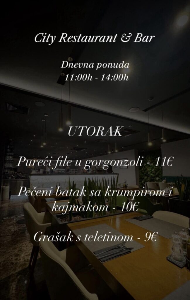City restoran & bar, Hrvatskog crvenog križa 45, kontakt 020 301 800, ne vrše dostavu