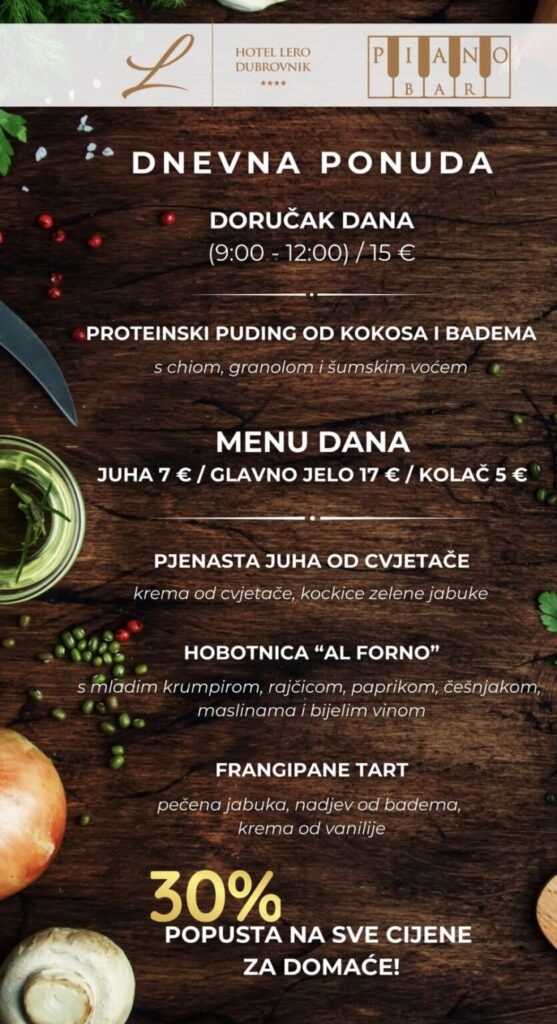 Piano bar – hotel Lero, Iva Vojnovića 14, Dubrovnik, kontakt 020 341 432, nema dostave