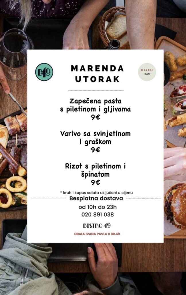 Bistro 49, Obala Ivana Pavla II, br.49, kontakt 020 891 038, moguća dostava