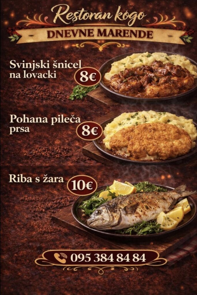 Restoran KOGO, Srebreno, Župa dubrovačka – 095 384 8484, 095 596 8873, moguća dostava