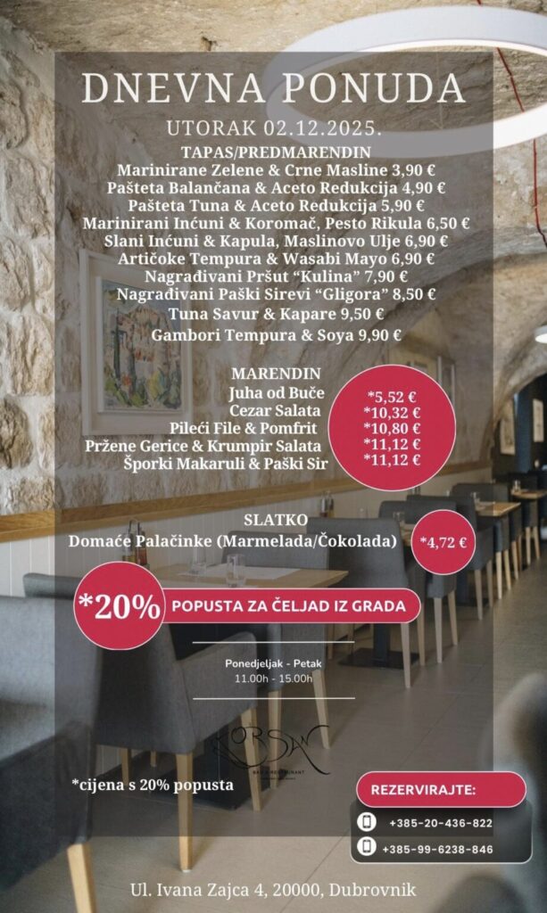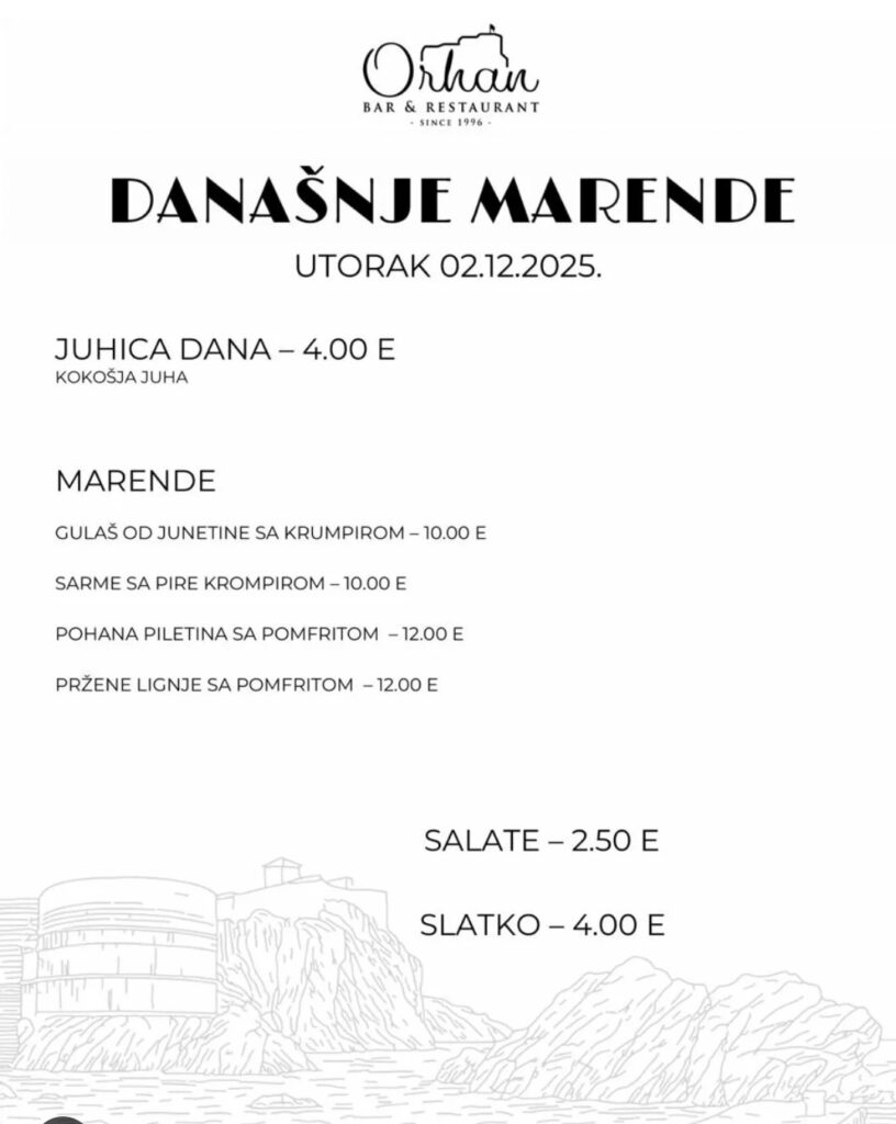 Imate ponudu dnevnih marendi, i želite ih promovirati na dubrovniknetu?! Javite se s povjerenjem na marketing@dubrovniknet.hr ili na 091 344 6000