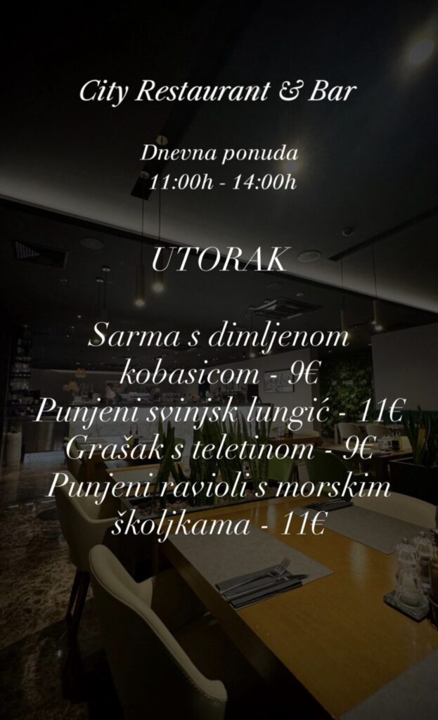 City restoran & bar, Hrvatskog crvenog križa 45, kontakt 020 301 800, ne vrše dostavu