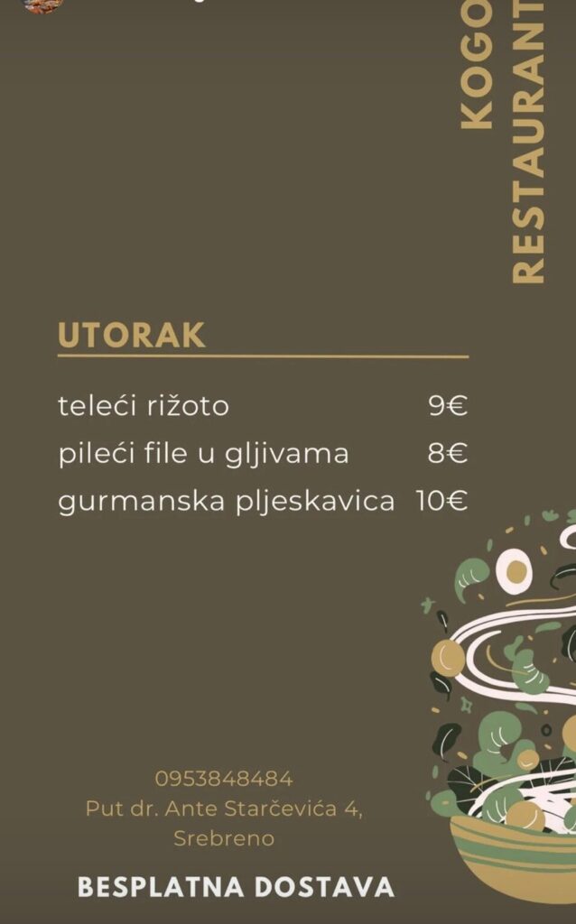Restoran KOGO, Srebreno, Župa dubrovačka – 095 384 8484, 095 596 8873, moguća dostava