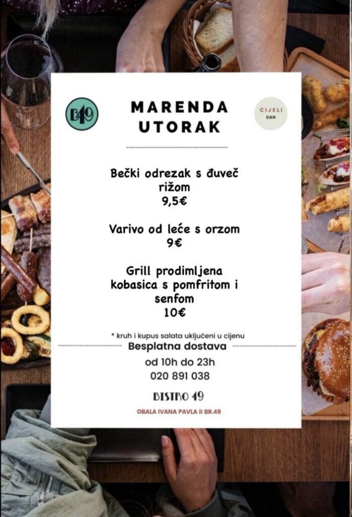 Bistro 49, Obala Ivana Pavla II, br.49, kontakt 020 891 038, moguća dostava