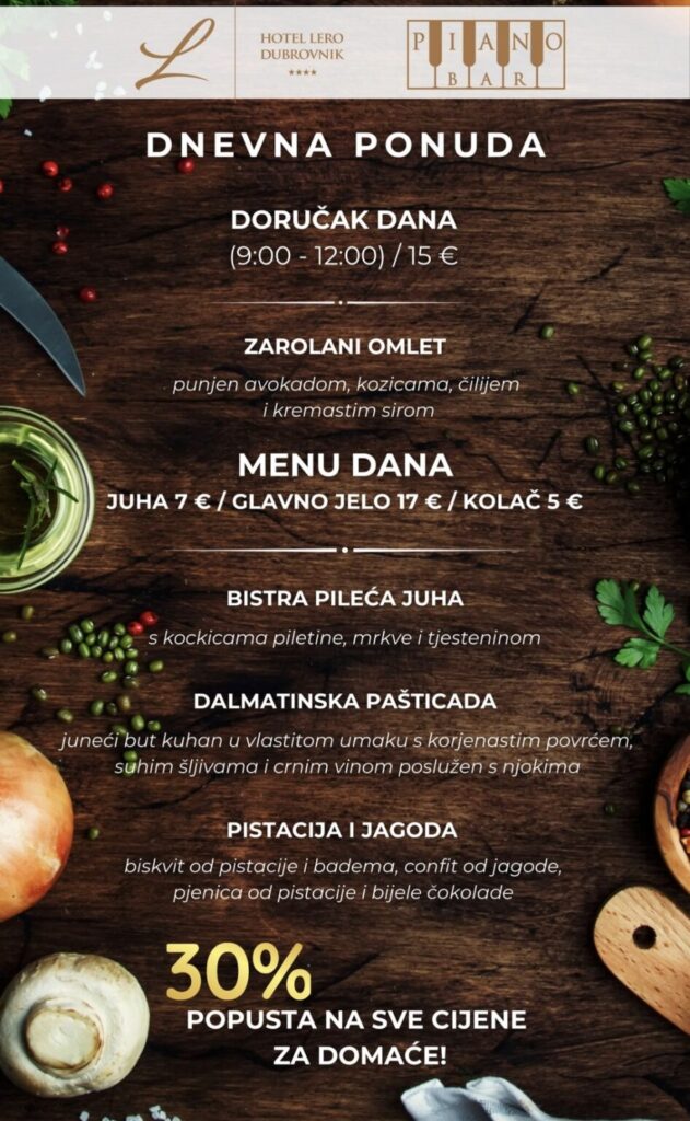 Piano bar – hotel Lero, Iva Vojnovića 14, Dubrovnik, kontakt 020 341 432, nema dostave