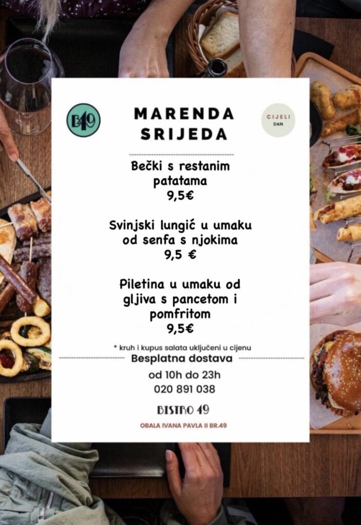 Bistro 49, Obala Ivana Pavla II, br.49, kontakt 020 891 038, moguća dostava