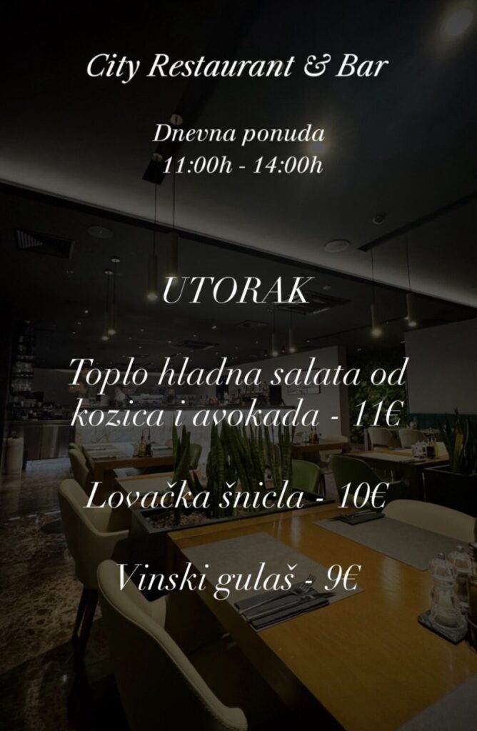 City restoran & bar, Hrvatskog crvenog križa 45, kontakt 020 301 800, ne vrše dostavu
