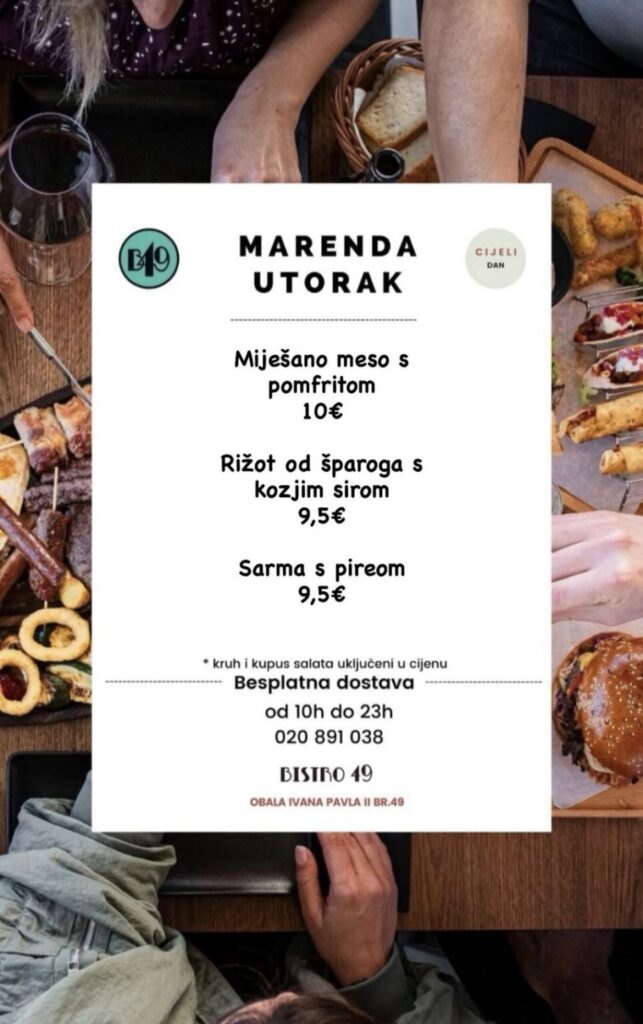 Bistro 49, Obala Ivana Pavla II, br.49, kontakt 020 891 038, moguća dostava