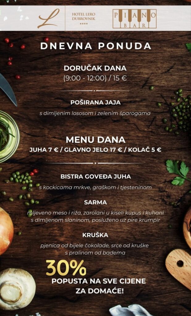 Imate ponudu dnevnih marendi, i želite ih promovirati na dubrovniknetu?! Javite se s povjerenjem na marketing@dubrovniknet.hr ili na 091 344 6000