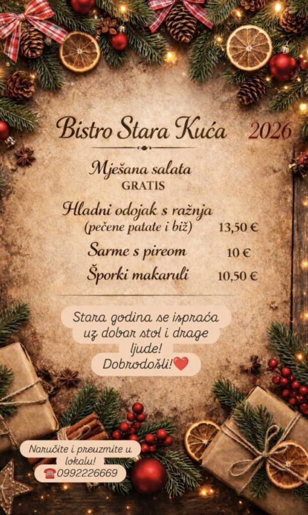 Bistro Stara Kuća, Dr.Ante Starčevića 19, kontakt 099 222 6669, ne vrše dostavu, moguće preuzimanje u restoranu