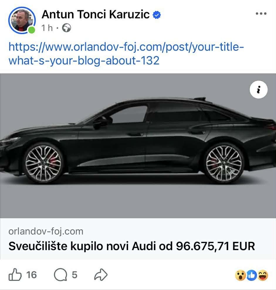 Sveučilište u Dubrovniku najoštrije osuđuje širenje neistinitih i zlonamjernih tvrdnji koje su ovih dana objavljene na Facebook profilu Antuna Tonćija Karužića, te na povezanim mrežnim stranicama, a koje prenose slične neistinite tvrdnje o kupnji automobila marke Audi u iznosu od 96.675,71€.