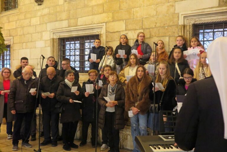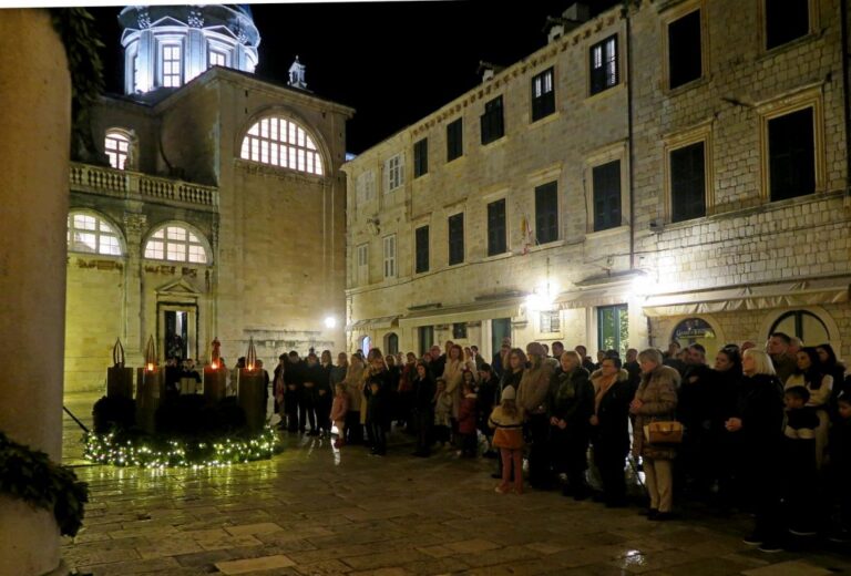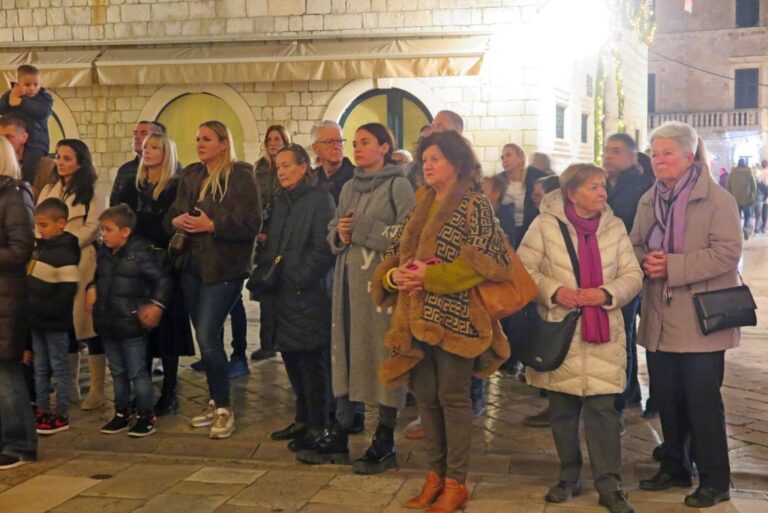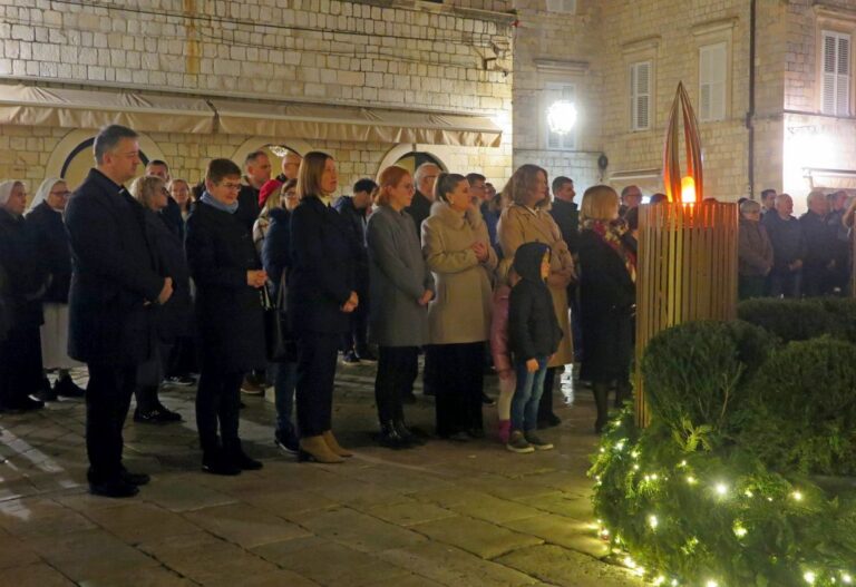 Među sudionicima molitve ispred Kneževa dvora bio je veći broj vjernika župe sv. Petra, a pjevanje adventskih pjesma predvodio je Mješoviti zbor župe pod vodstvom s. Marinele Žuro.