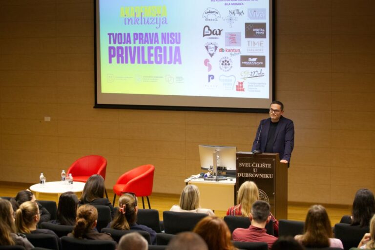 Konferencija Tvoja prava nisu privilegija, održana na kampusu Sveučilišta u Dubrovniku prošlog četvrtka i petka, 20. i 21. studenog kao središnji događaj projekta Akademska inkluzija, okupila je niz govornika. Kroz predavanja, panele i radionicu predstavili su različita iskustva vezana uz tjelesne poteškoće, prepreke u učenju i izazove s kojima se studenti s invaliditetom susreću tijekom studija.