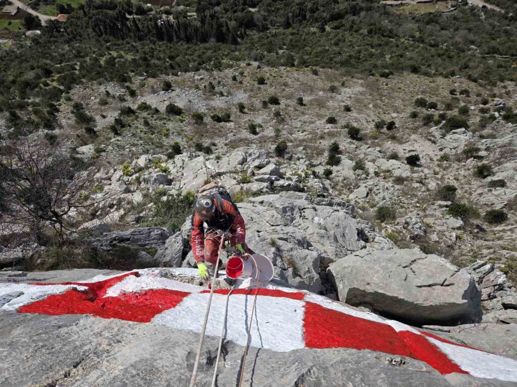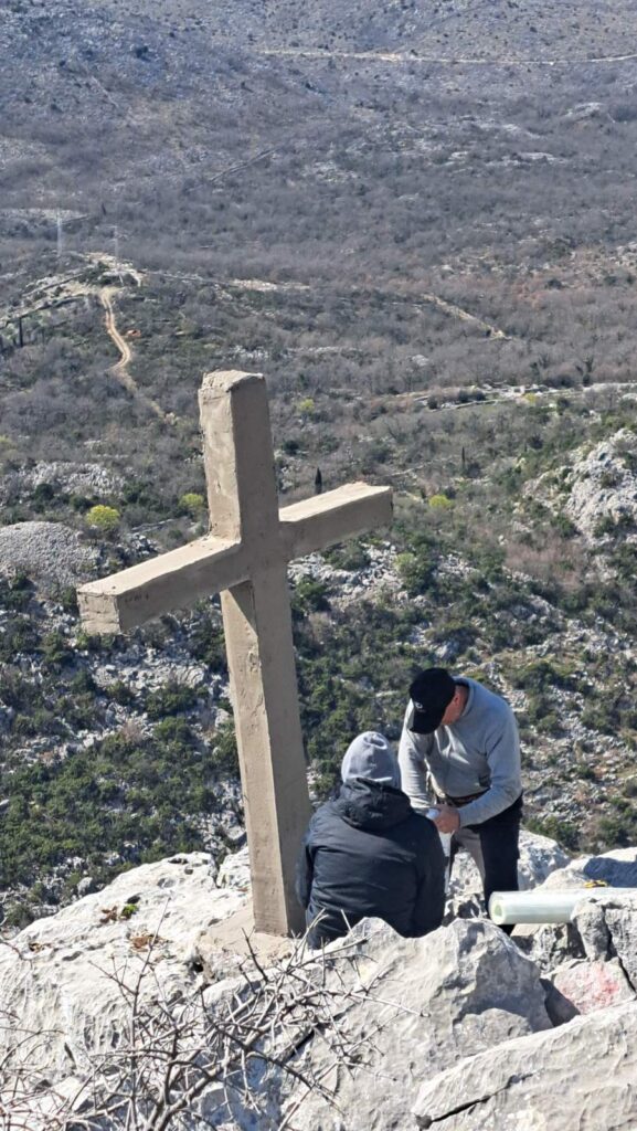 U Mrčevu je obnovljen grb kojega je u veljači 1990. godine crtao  pokojni branitelj i umjetnik Niko Lučić. Tijekom srpske okupacija na grb je ispaljeno puno raketa da ga uništi, ali nisu uspjeli. Grb je na inicijativu mještana obnovljen kao i križ koji je zavjetno napravljen nakon Domovinskog rata, a kojega je izgradio Đuro Lučić. U radovima na obnovi grba je sudjelovao Ivica Kvestić Kveki, alpinist i branitelj.