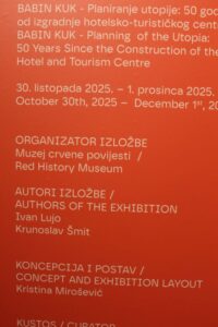 Izložba “Babin kuk – Planiranje utopije: 50 godina od izgradnje hotelsko-turističkog centra”, otvorena je sinoć u galerijskom prostoru Muzeja crvene povijesti u TUP-u.