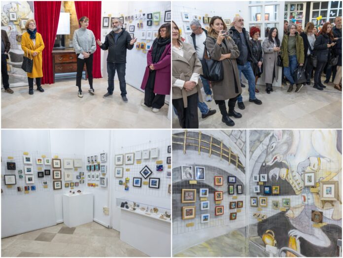 – Duga je tradicija minijatura u našoj likovnoj svijesti i to je tek podtekst izložbi jer iz nje izranja jedan cijeli suvremeni koncept. Broj od stotinu autora je izazovan, izazov je za prostor, za postav, za instituciju… Kroz različite suvremene medije izložba okuplja veliki broj umjetnika i amatera koji u maloj formi i kroz različite izričaje pokušavaju dati svoj obol. Dakle, imamo od tradicionalnih medija, ulja na platnu, akvarela do skulptura, digitalnih grafika… Ti mali formati uistinu iziskuju našu pažnju, zaustavljanje i promatranje, nevjerojatna količina energije i snage izvire iz ovih minijatura i to prepuštam vama da pogledate… Neki autori imaju i po tri rada i to zahtijeva određeno razdoblje gledanja. Nadam se da će vam izložba, kao i meni, biti ugodna za gledanje – rekla je Puhara zahvalivši autorima na sudjelovanju i posjetiteljima na dolasku.