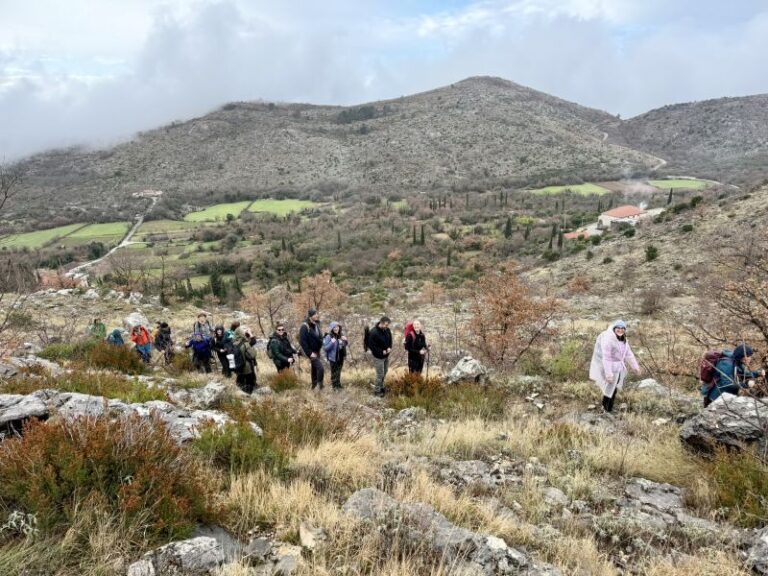 Čudljivo vrijeme i povremena kiša na pojedinim dijelovima šireg dubrovačkog područja nije zabrinula planinare, pa su krenuli na uspon. Nakon sitne kiše u samom početku, vrijeme se u ovom dijelu Konavala popravilo, pa je bilo i kraćih sunčanih razdoblja. Ali i magle i oblaka koji su sakrivali od pogleda Sniježnicu i Orjen.