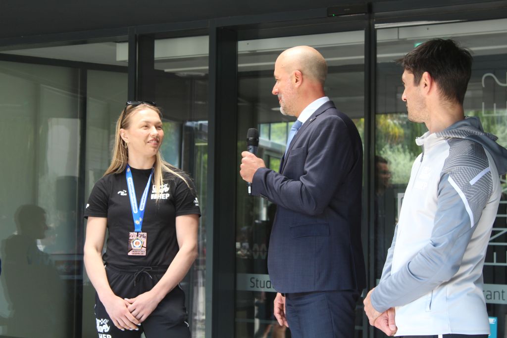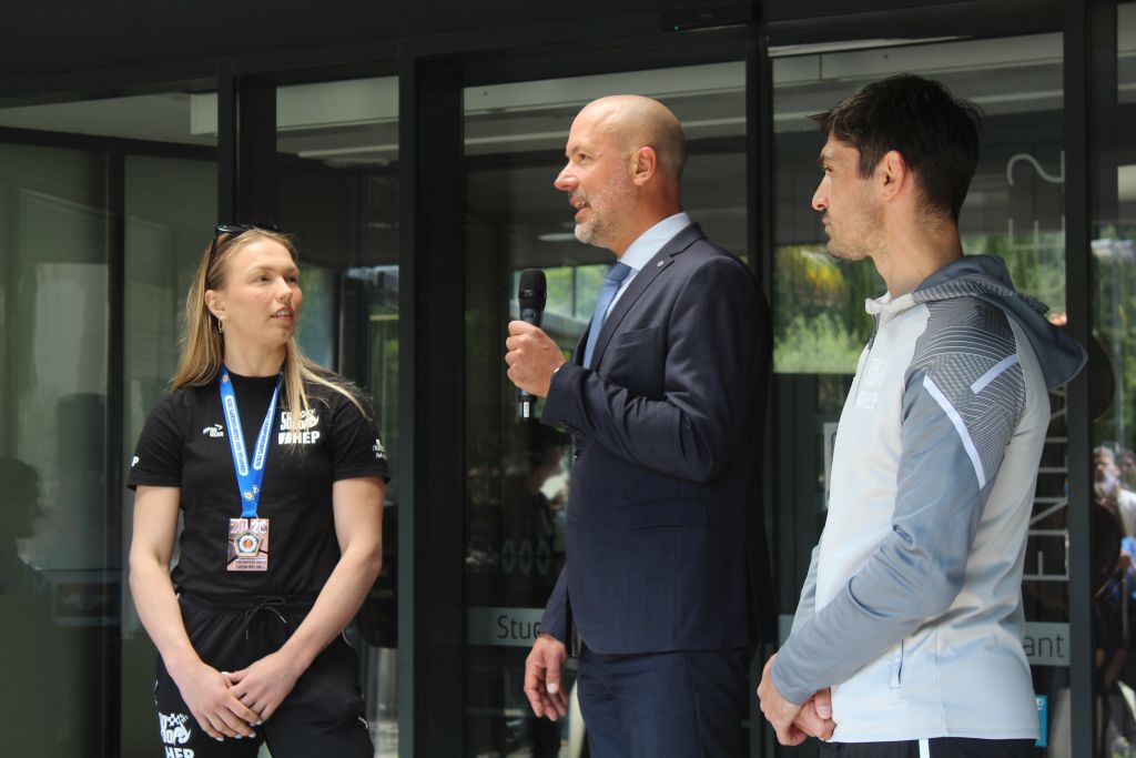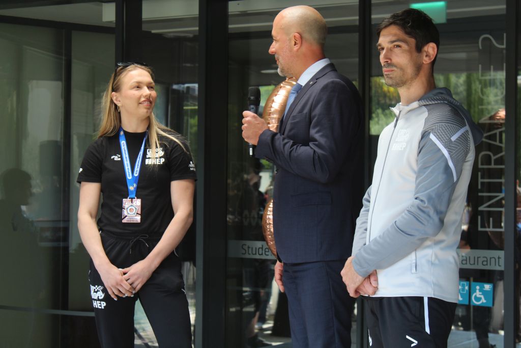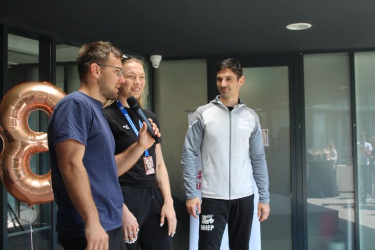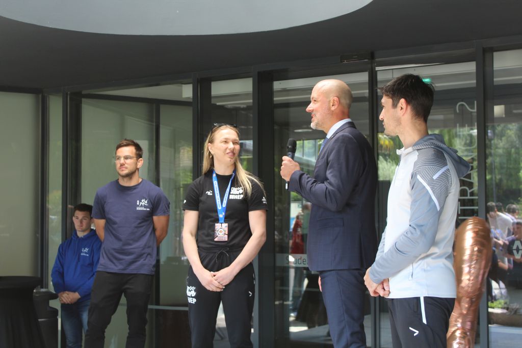 Ekipa, kolege sportaši iz Judo kluba Dubrovnik 1966, zaljubljenici u judu dočekali su danas ispred Studentskog doma, uz baklje, navijačke pjesme i cvijeće, našu Ivu Oberan s broncom oko vrata i njenog trenera Matea Semiza, a po povratku s Europskog prvenstva u judu u Tbilisiju u Gruziji.