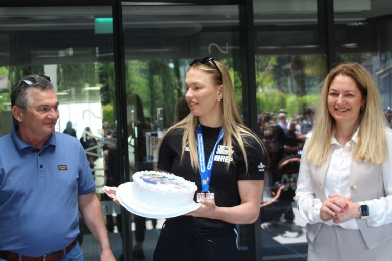 “Sretna sam kad vidim koliko je ljudi danas došlo na doček i naravno da mi puno znači podrška prijatelja, obitelji, roditelja, kluba”.