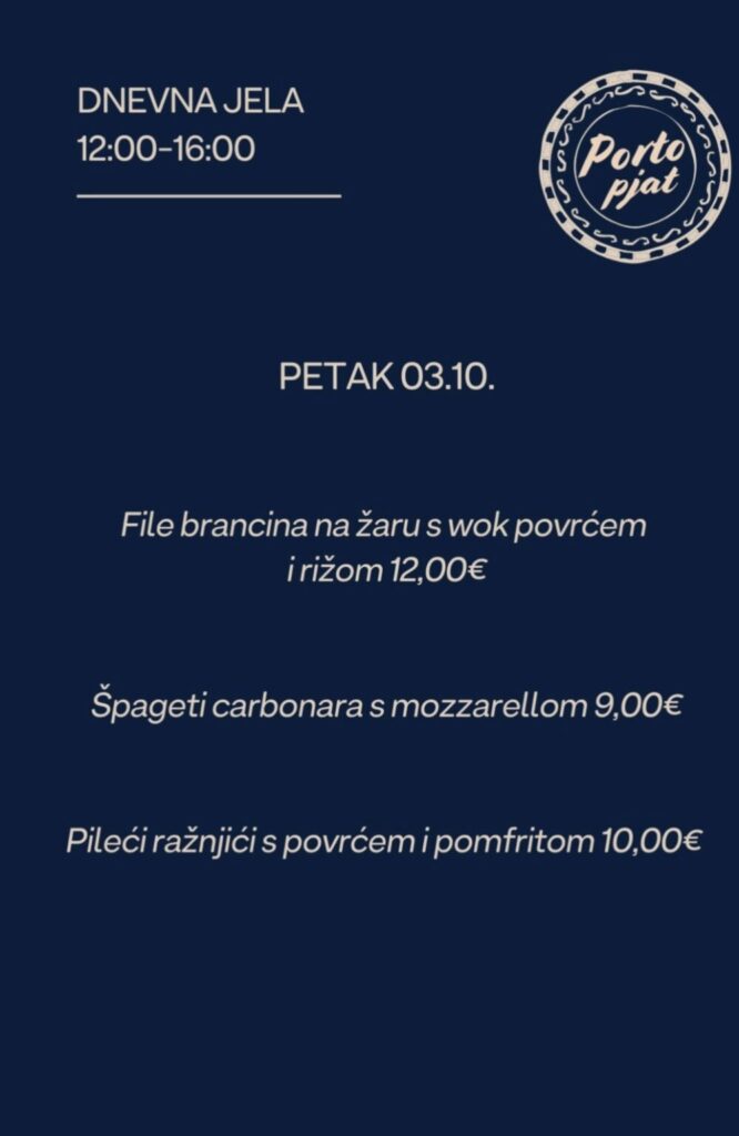 Bar & Restoran Porto, Hrvatskog Crvenog Križa 2, Dubrovnik, kont. 020 301-450, ne vrše dostavu, moguće preuzimanje u restoranu