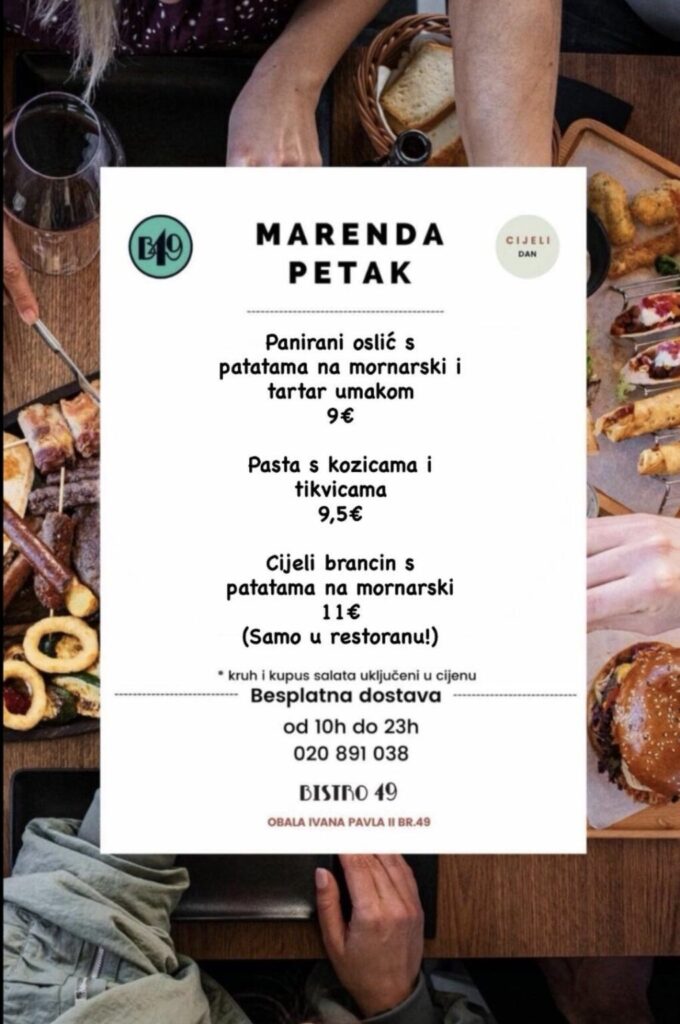 Bistro 49, Obala Ivana Pavla II, br.49, kontakt 020 891 038, moguća dostava