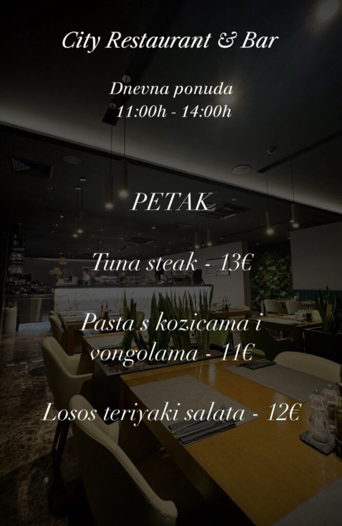 City restoran & bar, Hrvatskog crvenog križa 45, kontakt 020 301 800, ne vrše dostavu