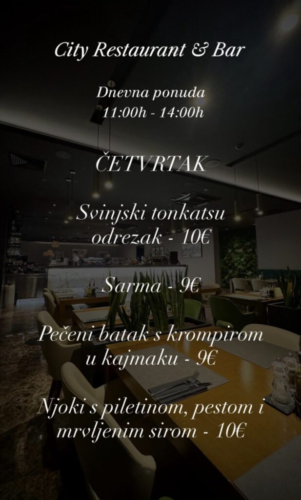 City restoran & bar, Hrvatskog crvenog križa 45, kontakt 020 301 800, ne vrše dostavu