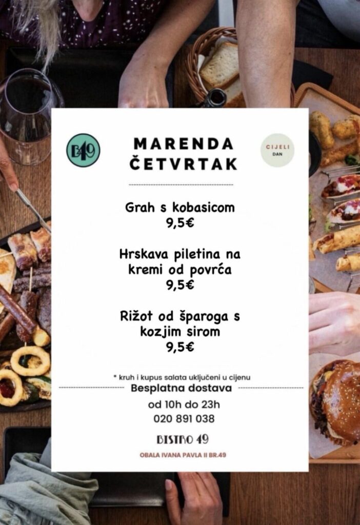 Bistro 49, Obala Ivana Pavla II, br.49, kontakt 020 891 038, moguća dostava