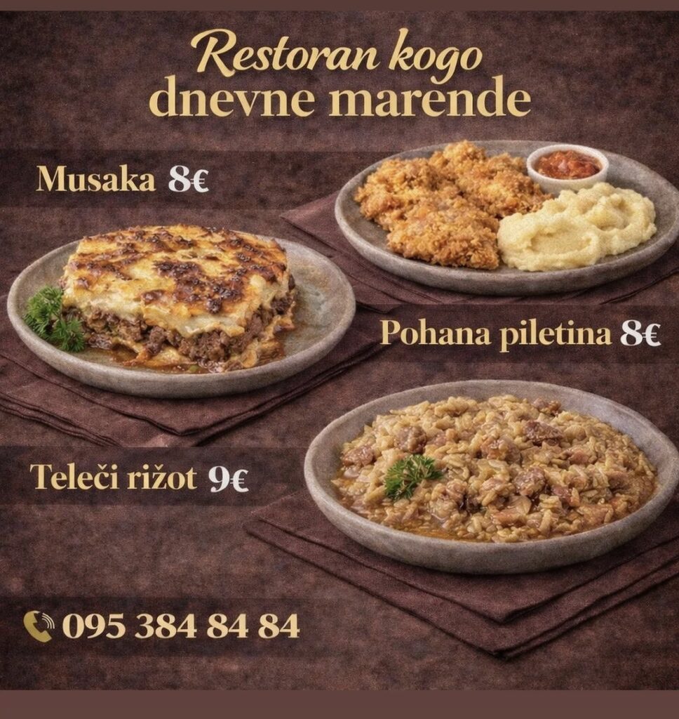 Restoran KOGO, Srebreno, Župa dubrovačka – 095 384 8484, 095 596 8873, moguća dostava