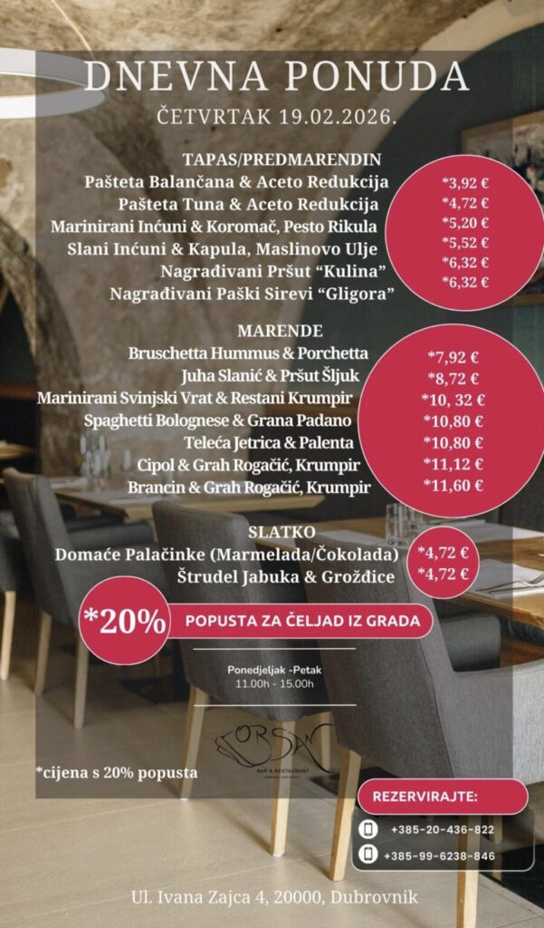 Imate ponudu dnevnih marendi, i želite ih promovirati na dubrovniknetu?! Javite se s povjerenjem na marketing@dubrovniknet.hr ili na 091 344 6000